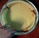 * Cover the cake with saran or wax paper and put weights on top. Let it chill at least 4 hours. (It will settle. I use rice or beans for the weight.)