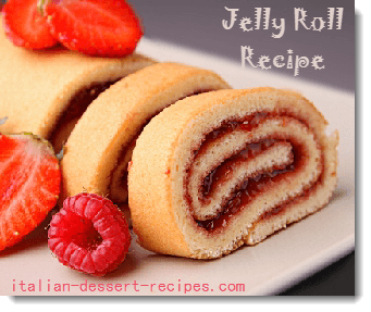 Ajelly roll recipe isn't what you would expect to find in an Italian cakes section. And I know that. But this is one recipe I saw my mom make a few times and thought I'd share because it's really fun to make. And kids love it. Why? Because it tastes like jam sandwich. It's jam and bread in flavor ~ but the roll makes it look like it's a fancy schmancy bakery goody.