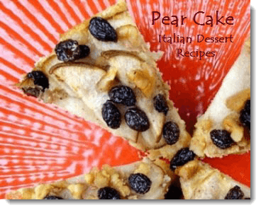 This pear cake is one of three recipes I have in my pear recipes collection. And with the little twists it's one of those Italian cakes that makes pear haters change their ways. My kids won't touch a pear when it sits in the fruit bowl. They'd rather stick a bicycle spoke in their eye. BUT they ate this WHOLE cake last night. I said, "You're eating pears, ya know!" They gave me the "whatever" look.
